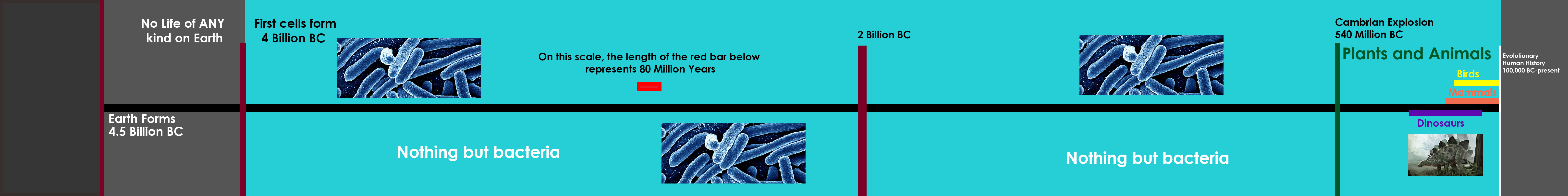 Below is a timeline of Earth history according to deep time/Evolution. The history of all life on earth takes place in the blue section, but until the green line at the far right, all of it was bacteria, which are not male or female. On this timeline, NOTHING was made male or female until after that green line, and humans show up inside of that think white line at the very far right.