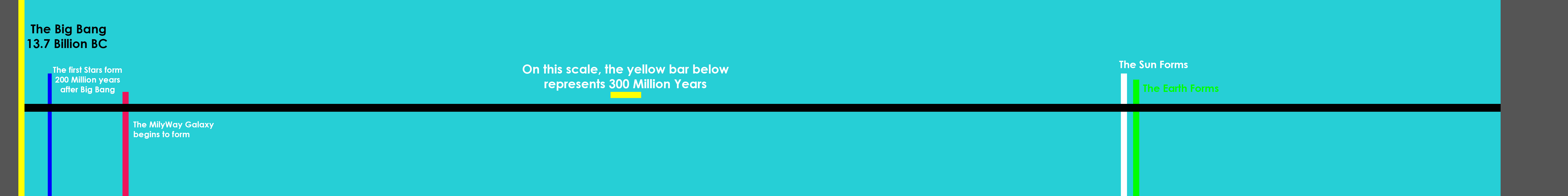 The difference between the Old earth Creation (OEC) models is maybe 90,000 years for the date of Adam and Eve (if their model even accepts Adam and Eve as being real) and will therefore be either a foot or ten feet, but on the big, deep time scale, that’s not really significant, believe it or not. What’s more important is when the beginning is. When is the BEGINNING? Well, let’s zoom out a little further.