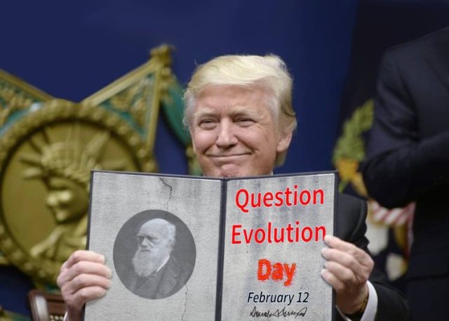 Or… maybe this is Photoshop. Either way, the annual day of throwing off the shackles of religious indoctrination (i.e. Darwin) and choosing to do some free thinking (i.e. asking questions my college Biology 101 teacher REFUSED to allow in his classroom) is coming up February 12th!
