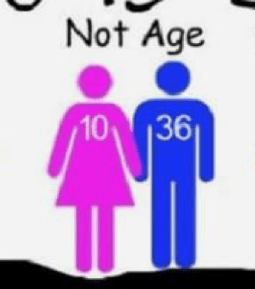 On the other hand, the couple above are still closer in age to each other than Mohammed (age 53) was to his his “favorite” wife when he married her- Aisha, who was 6 at the time. Yup. SIX years old.