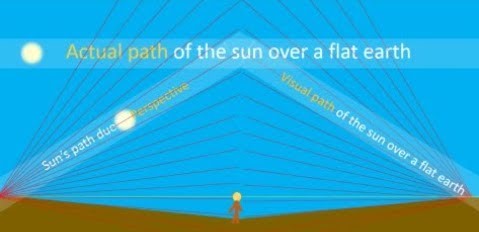So Scott sent me a video which tries to explain that the sun “setting” is an illusion based on perspective. It’s pretty simple- if you’ve ever watched a plane fly overhead, you will notice that as it approaches, it starts out low in your field of vision and then appears to get HIGHER until it is over you, and then appears to get LOWER as it disappears toward the horizon- but it’s staying the same distance from the ground. The sun does the same thing (so the theory goes) and since this is what we observe when a plane at a constant and fairly close distance moves overhead, so it proves that the sun is also moving at a constant distance over us and only APPEARING to get higher and lower.
