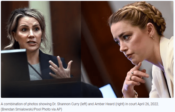 “Curry, who noted in her testimony that she often works with celebrity clients, based her evaluation on case materials provided by Depp’s attorneys as well as two arranged interviews with Heard.”